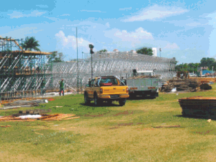 Photos show shots of the stage and grand stand assembly, taken at different intervals - from implementation, till the project was completed. This was the stage and grand stand project undertaken by Jacheong to build for the National Day's celebrations and festivities.